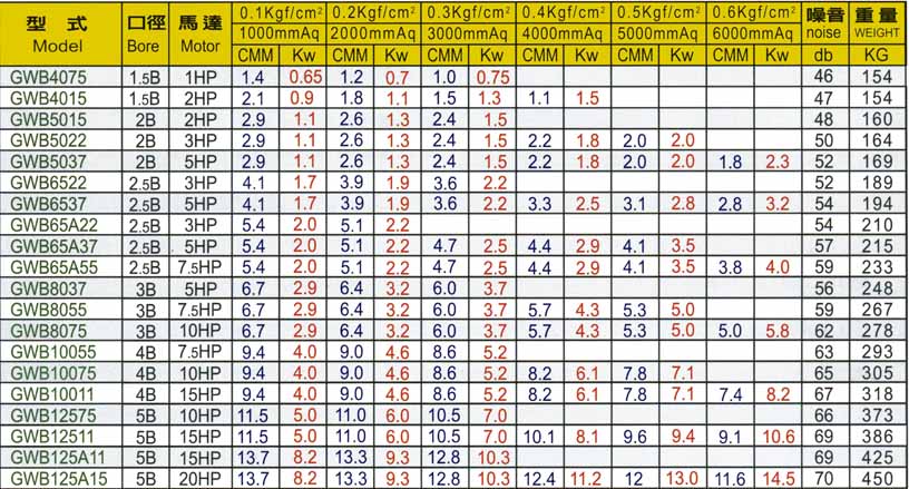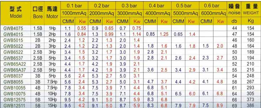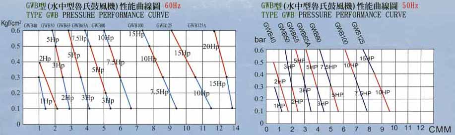Perfrmance Table & Curve Drawing of Submersible Type Roots Blower