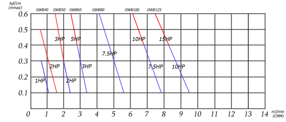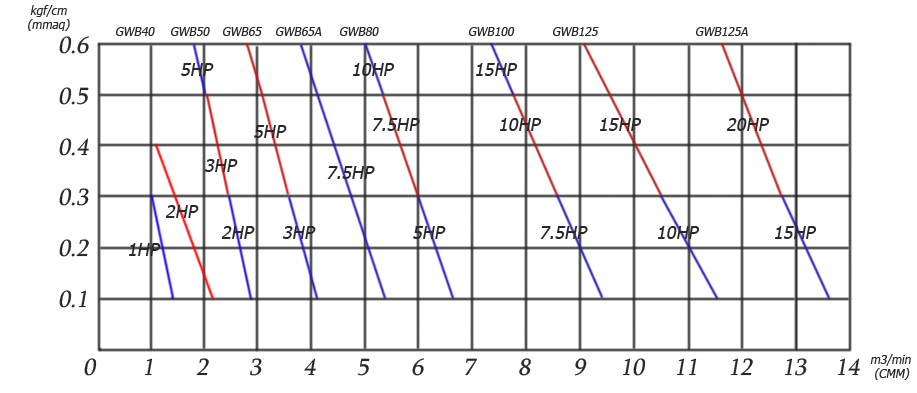 | 60HZ PERFORMANCE CHART OF GWB SERIES | ||||||||||||||||
