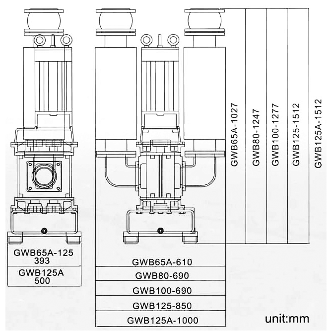 | GWB6537 | 2½B | 5Hp | 3.4 | 1.5 | 3.2 | 1.7 | 3.0 | 1.9 | 2.8 | 2.1 | 2.6 | 2.4 | 2.3 | 2.7 | 53 | 194 |