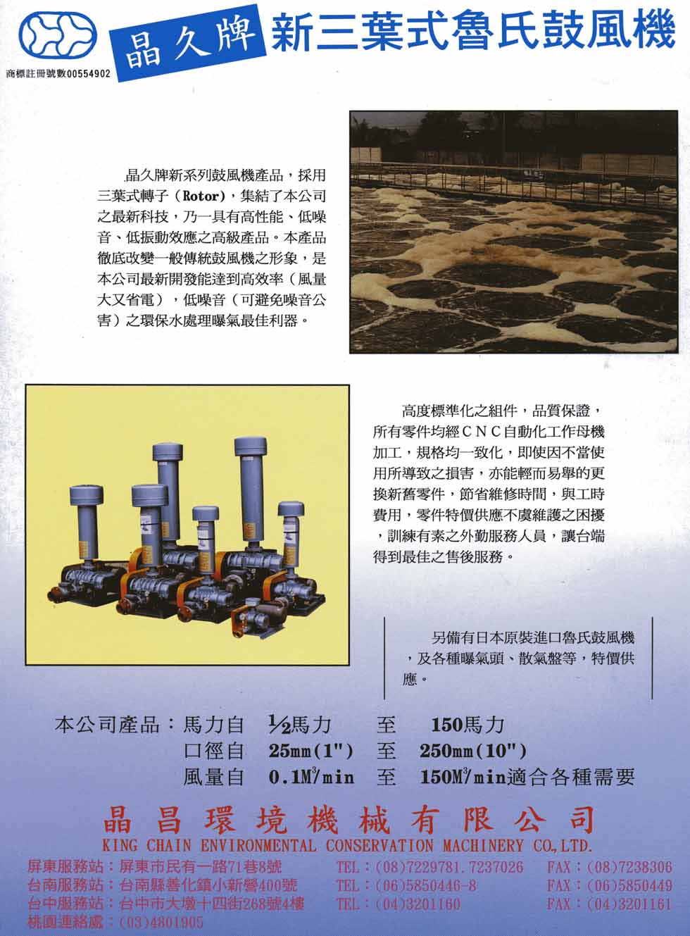 晶久牌魯氏鼓風機,乃依豐富之經驗,及實際研究開發而成之新式、袖珍型鼓風機。